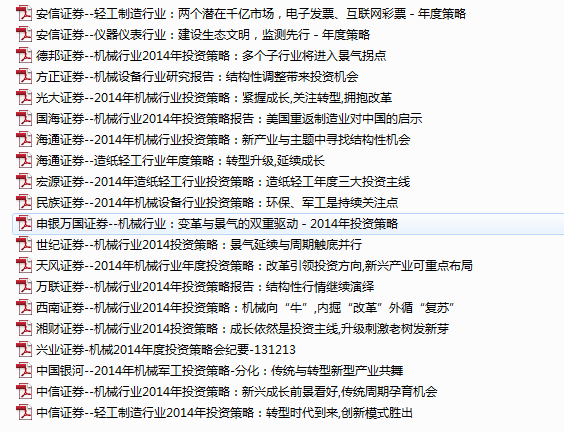 2014各券商年度投资策略报告汇总——机械轻工篇(共20篇报告,详见下方图片显示)