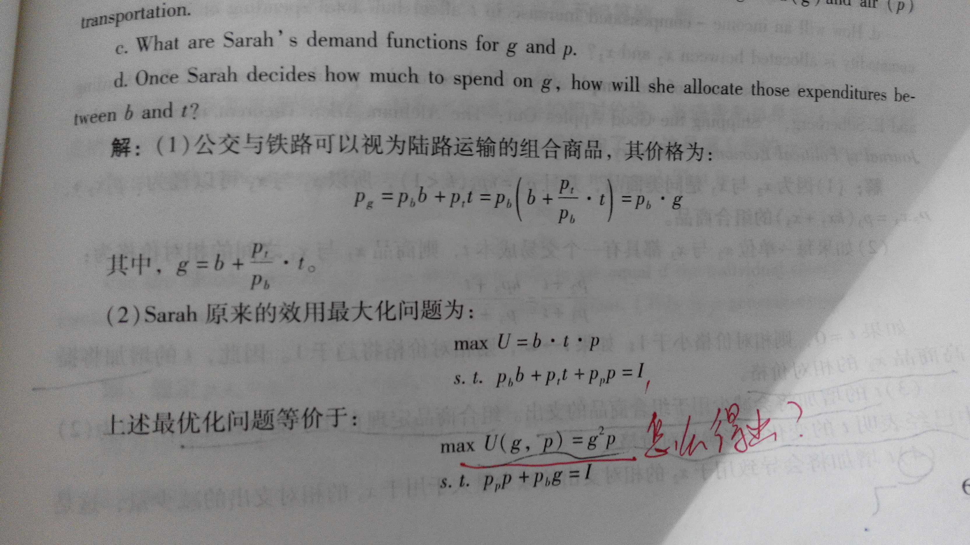 求教大神,第二问的效用函数U=g^2*p是怎么得出的?
