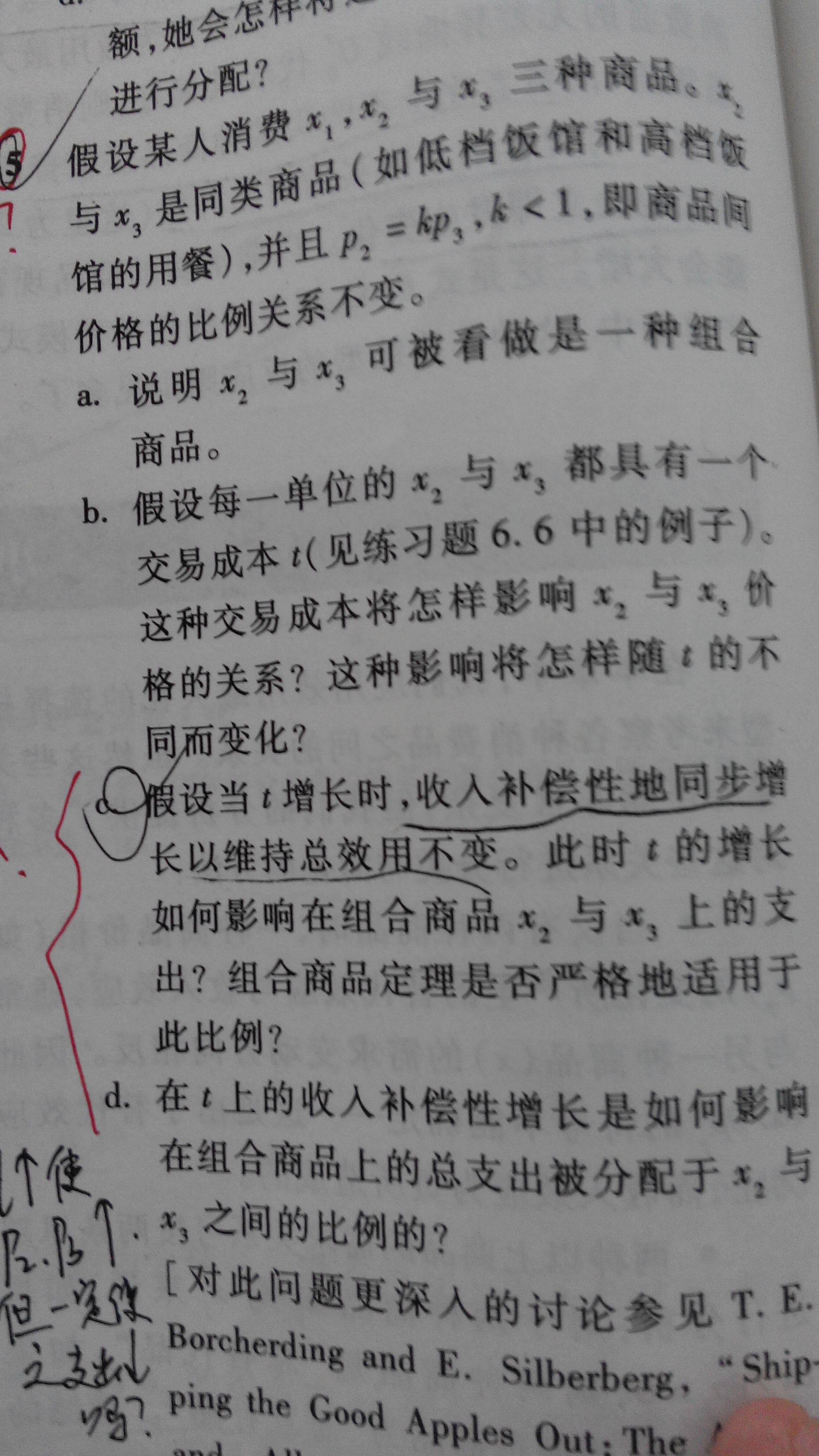这里面的第三问答案是t的增加会减少组合商品的支出,为什么呢?是不是这里面的支出不包括交易费用?