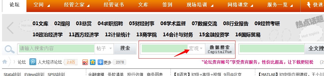 人大经济论坛CapitalVue合作数据库的使用权限如何获取?1.论坛的认证用户(赠送3天)、在线视频账号(赠送6天)贵宾账号(赠送6-28天)、VIP账号(赠送9-21)等各账号分别一次性获赠少许使用天数,如图紫色框图示位置。