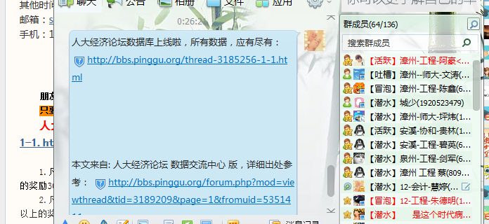 1.凡分享的QQ群,人数在100人以下的,视情况奖励10论坛币;100-300人的,奖励20-30论坛币(每群限奖励一次);300-500人的奖励30-40论坛币,500人以上的奖励60-100论坛币。