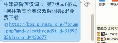 xianyong79 发表于 2014-8-31 17:32 牛津高阶英汉词典 第7版pdf格式+柯林斯高阶英汉双解词典pdf+朗文当代英语大词典pdf免费下载,请严格用于学习 ...