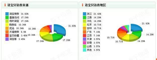 在“宝贝销售排行”中,可以看到在不同时间段的宝贝数据汇总及排行,让你首先对宝贝信息有个整体的了解。在最近7天被访问宝贝TOP10就很明确的告诉我们,最有潜力的宝贝就在被访排名的前几,占全部点击量的百分之十几二十几甚至更多。当选定了潜力宝贝,然后再加以包装推广,宝贝的被访量就更高,名气就更大,自然就很好的带来更多的流量,也带来了销量。