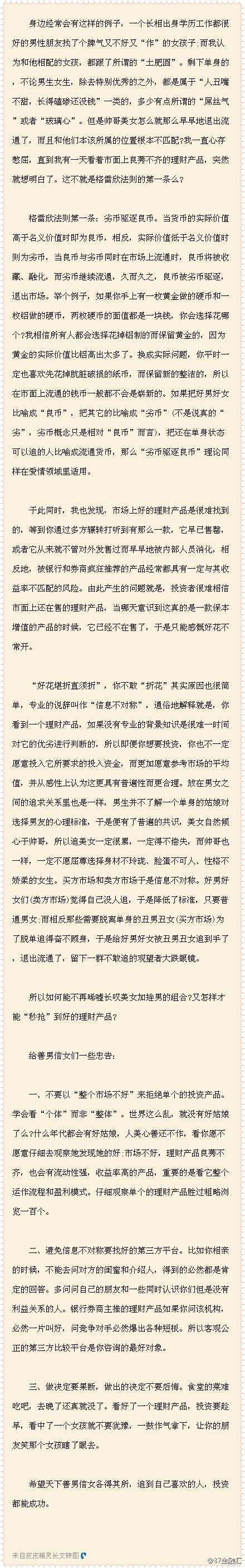阿宝拉拉 发表于 2014-9-3 09:32 今天刷微博看到一个有趣的微博,美女为啥都跟了土圆肥,穷屌丝就只剩下单身命么?我大学时期也有一个漂亮的 ...