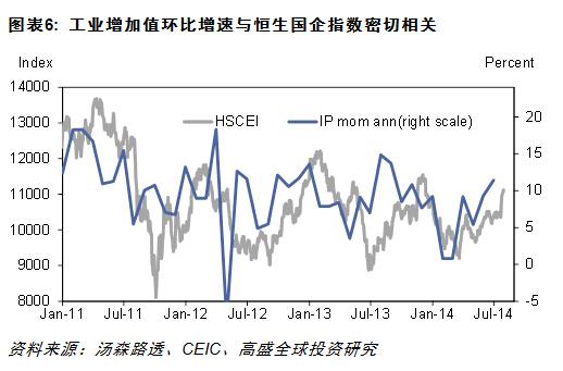 近几个季度以来,中国相关的资产市场伴随经济的周期性起伏出现了大幅波动,在恒生国企指数与工业增加值环比增幅之间即体现出了这种关联关系(图表6)。