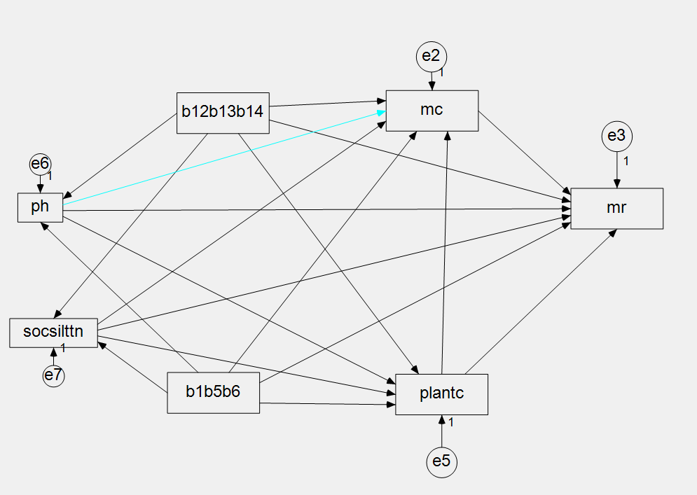 已经确定b12b13b14与b1b5b6两者之间没有联系。但计算后MI显示,只有将这二者联系起来,才能使卡方达到标准(由144降低到10以下)。请问,如何在不使这两者发生联系的情况下,使模型检验通过?