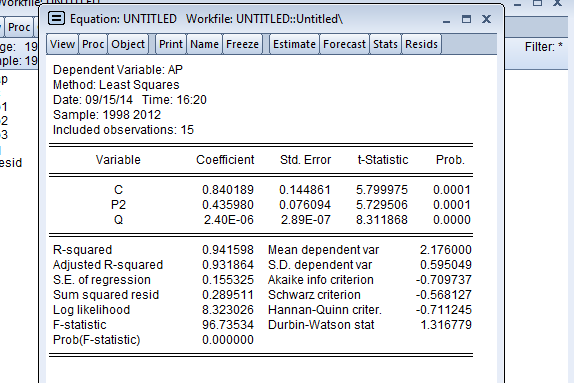 我做的是进口某种商品的价格P和进口量Q,对我国商品价格AP的影响。模型为lnAP=αlnP+βlnQ+μ