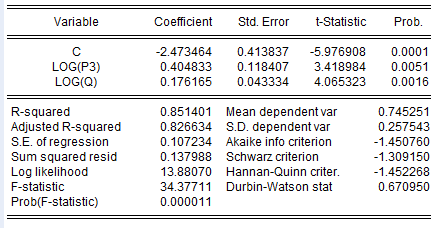 p2,p3都可以 因为这两个模型中,参数都通过了检验,P1的模型中LOG(Q)未通过检验(主要看P值)