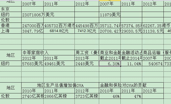 近几年伦敦、纽约、东京、香港和上海的经济数据,包括GDP、人均GDP、工资、进出口、人均可支配收入等,欢迎下载!