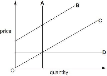 下图中A, B, C, D 哪条直线表示单位需求价格弹性?