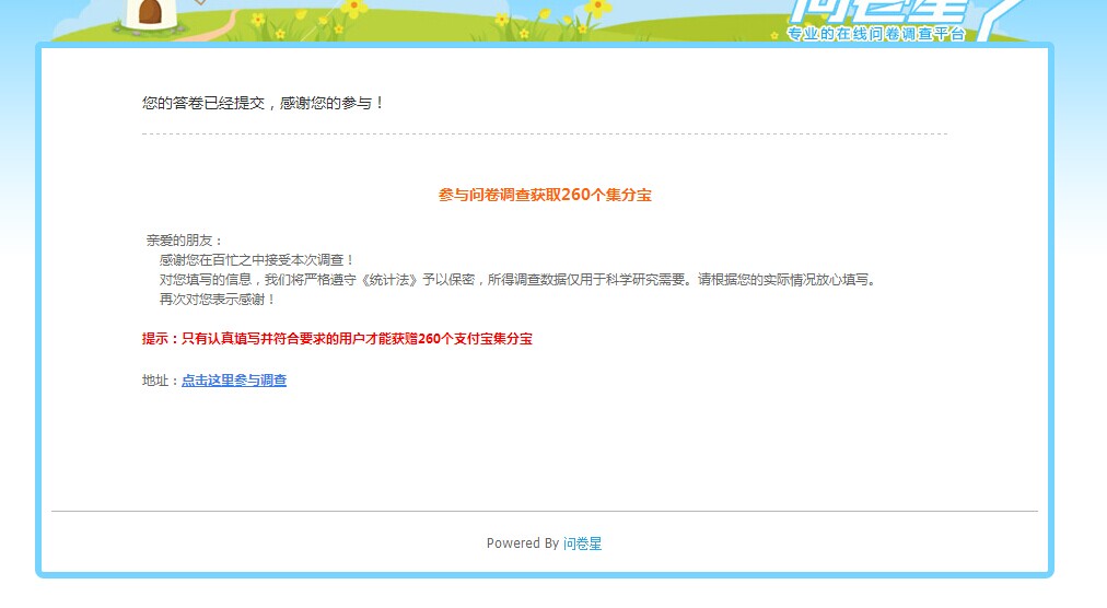 问卷调查提交后界面