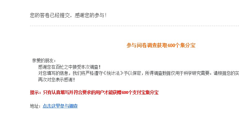 shenshi_yong 发表于 2014-9-24 13:53 也不知道刚才截图链接,能不能传输上,弄个截图。只需一次问卷奖励即可。谢谢大虾
