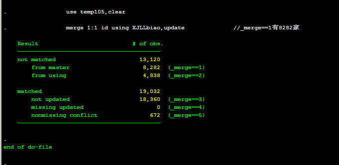 小可的疑问:_merge ==5 有672个,查help以及手册后,得知合并之后的数据集中,交叠的变量NI和accper中有672个即来自于master数据集,又来自using数据集。可是,如果我要把它们分别找出这672个观测分别来自master数据集抑或using数据集的话,要怎么办呢?