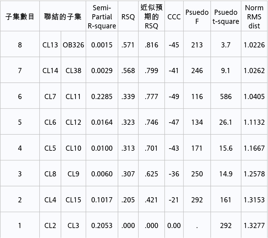 *CCC為輸出類間群集準則