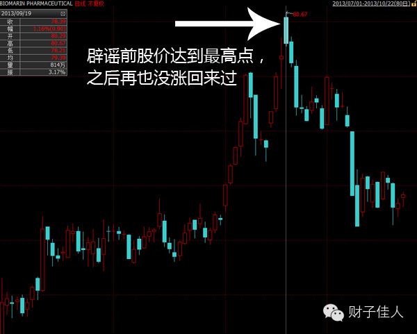 股市中总是充满了猜测与误会。2013年9月19日,美国一家媒体放出消息,声称罗氏药业(Roche Holding Ltd.,代码RHHBY)有意收购生物制药公司BioMarin(BMRN),正在融资。彭博社立即向罗氏药业CEO Severin Schwan求证, 后者声称并无此打算。