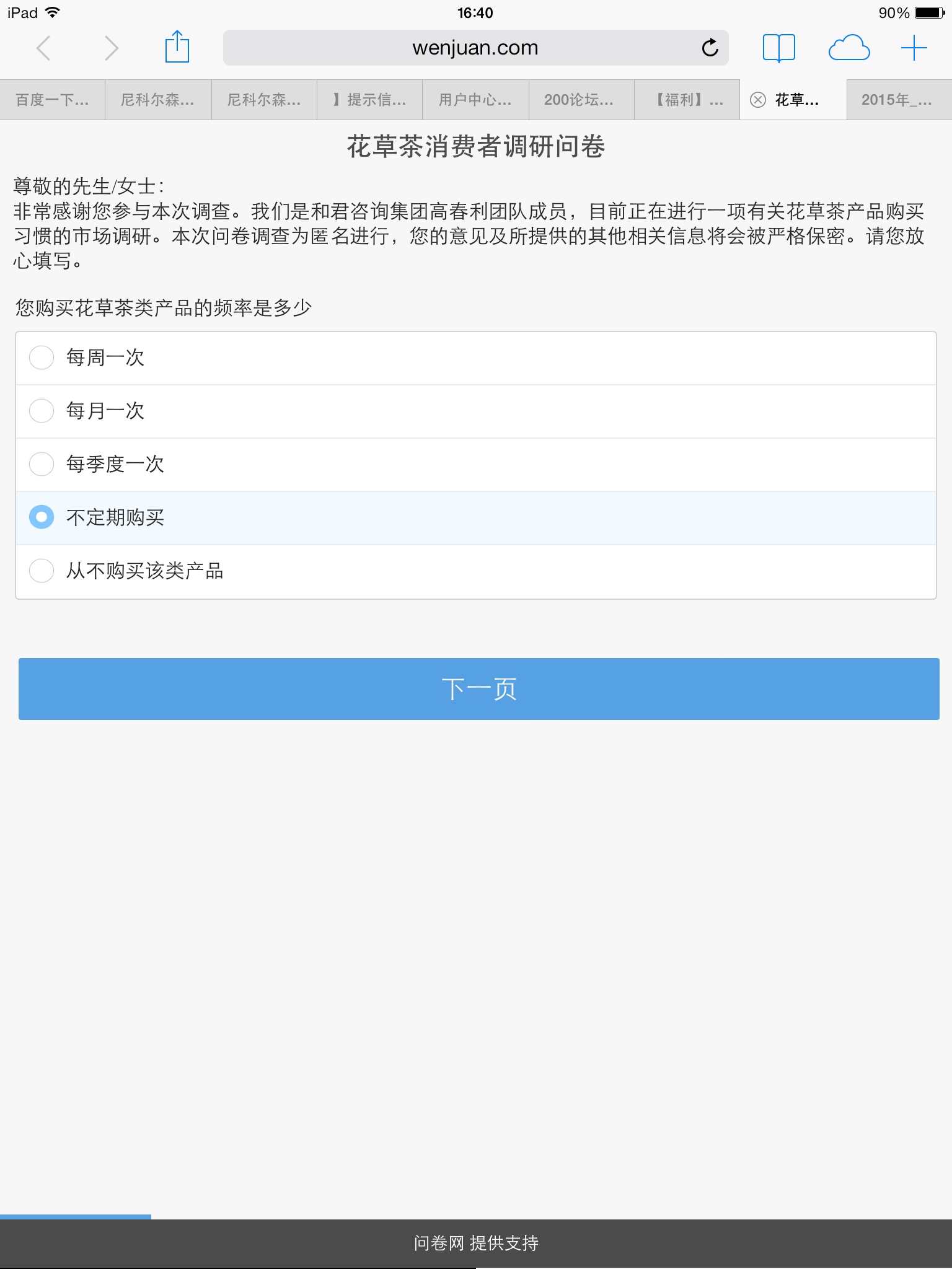 花草茶消费者调研问卷