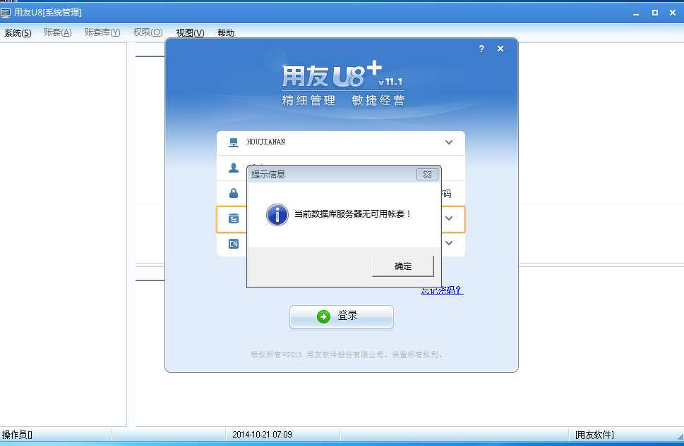 过去安装过早期版本, 未安装过这个版本。,其他用友t系列,t+,甚至nc,用admin用户登录,就能建立账套了。个人感觉是数据库配置的问题,应该没有在mssql建立u8数据库,你在安装的最后阶段有无建立u8数据库的提示?你可以检查mssql是否启动?用数据库配置工具(有的话)配置u8与mssql的连接,一般是sa密码及ip地址问题(数据库服务器与应用服务器分开的话)问题,如成功,就应该有建立u8数据库的提示,这个过程应该较长。
