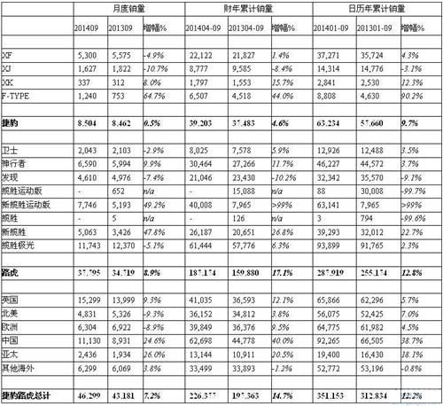 捷豹路虎9月销量
