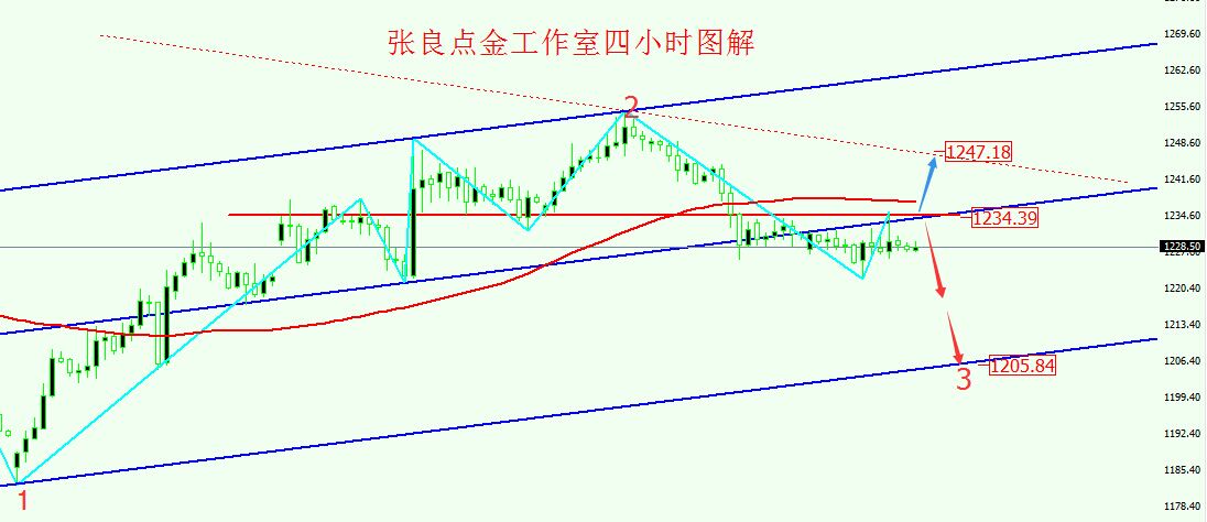 技术上而言,走势依旧很弱,前期金价跌破1235小时上升通道支撑之后,最终在昨日晚间进行技术性反弹测试1235一线的反压力!单从技术的角度来看,这是进一步下跌的开始!不要认为黄金止跌稍微反弹就以为要去1300。当前金价趋势已经发生改变,如果思路不能跟上市场运行的节奏,那么你始终都只能在涨跌中错失更多交易机会,而对于趋势性的大利润,更别谈能够包揽!1256金价开跌以来,笔者坚持看空有目共睹。思路性的空头你跟上了,显然已经赚足了,而对于这种跌势当中的反弹,仅仅是根鸡肋,盲目的去追涨杀跌,杀的不是利润,而是自己!四小时技术面来看,1205是空头拐角的时间必到值,而日线的重要支撑位是在1210不变!这是技术上的需求,我不知道基本面会否配合,但那是无法预测的,而我们当前能够看到的就是1205-1210这一区间近期会到,这是技术上呈现出来的!至于此前我们说过的1170这个点位,首先在1200关口跌破之后才能进一步下看!