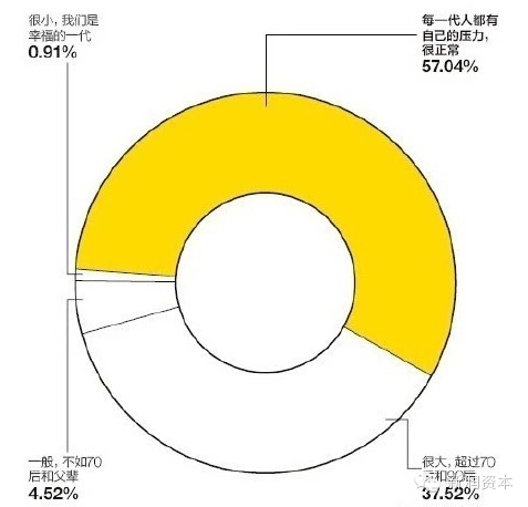 在回答“你认同哪种对80后生存压力的描述?”时,有57.04%的人称“每一代人都有自己的压力,很正常”,有37.52%的认为“很大,超过70后与90后”。