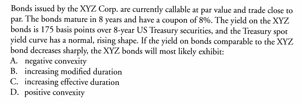 A,收益率快速下降的时候,债券价格快速上升,callable的发行方将会行权,强制买回债券,因此负凸性。