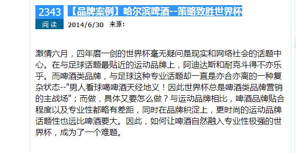 分享一篇来自中国教学案例网的经典案例:哈尔滨啤酒--策略致胜世界杯)
