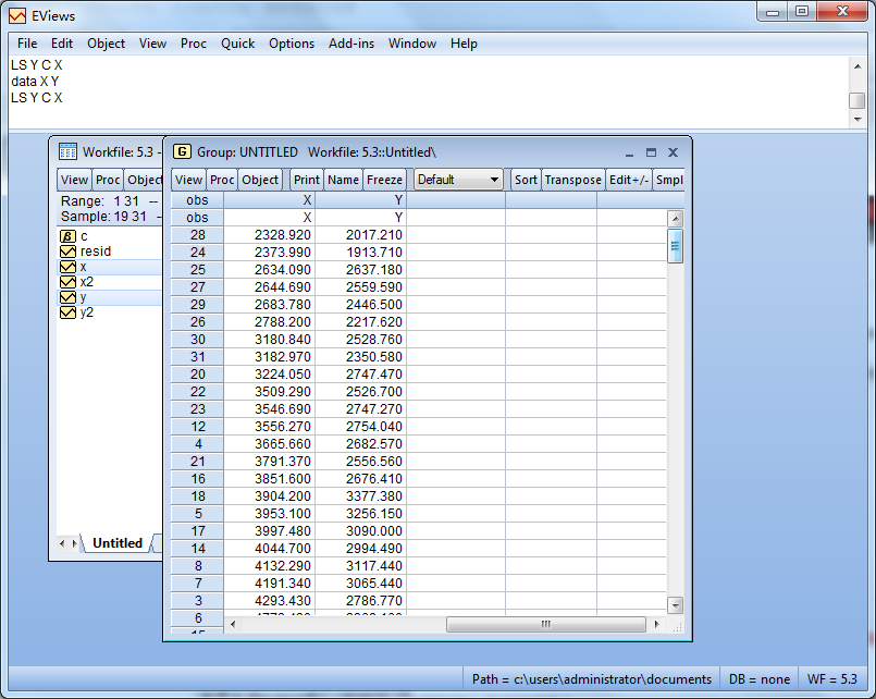 你不要在GROUP里面去排序,在GROUP里面排序,只是X和Y值的顺序改变了,序号还是原来的序号,回归的时候还是按照原来的顺序取值的