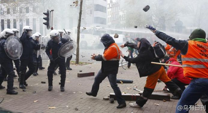 比利时警方以水炮和催泪弹驱散示威群众,布鲁塞尔街头爆发冲突。约50人受伤,另有30人被捕。