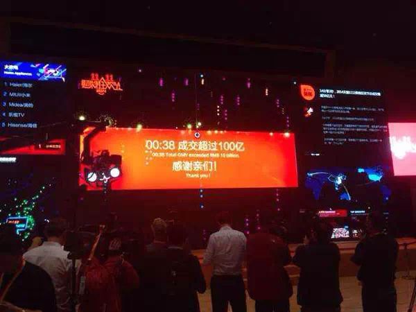 2014年,天猫11.11购物狂欢节开场38分钟28秒之后,交易额冲到了100亿元,其中无线占比45.5%。去年,冲到100亿用了5小时49分。