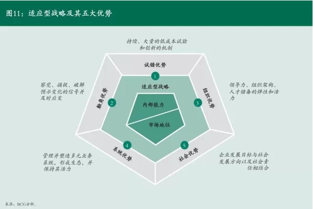 组织优势:为应对快速变化的市场环境,企业往往需要针对不同类型的业务单元采用不同的战略,比如,银行中相对稳定的公司业务可沿用经典的战略规划方法,而变化较快的个人金融业务则需采用更具适应性的战略。这就要求企业组织具备高度的弹性和较强的学习能力,以掌握和管理这种不同。