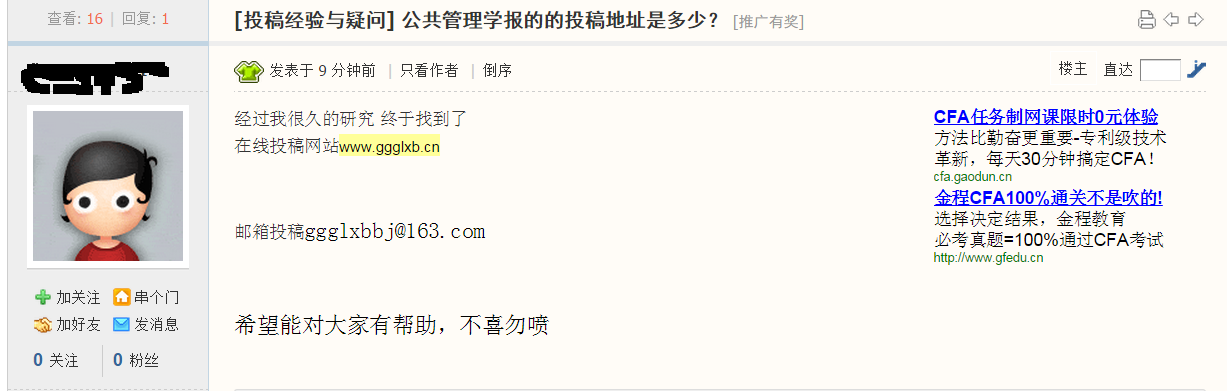 yaoxubing 发表于 2014-11-18 21:45 谢谢版主真负责任!!!骗子可恶!希望多披露这样的诈骗信息,让我们投稿更放心!