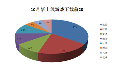 在下载量表现上,酷跑类游戏占35%,强势占据第一名,射击类占20%暂居第二,竞速类也有不错的成绩以10%占据第三,而在上线新游戏中排名第三的网游类,在下载量上仅有5%。同样在个体下载量上,表现良好的雷射战机、要么瘦要么死、暴力狂飙都是单机游戏,而网游仅有《天龙八部》独领风骚。