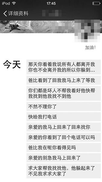 阿非跳楼之前,曾在微信朋友圈上留言表示:“再见大家,谢谢所有关心我爱我的人,这23年我很满足也很开心,我不恨任何人,只是怪我自己太没用。我真的尽力了,现在想想还真有点舍不得。”从言词之间不难看出阿非很自责,觉得自卑,但这也是同学想不明白的一点,同学都是阿非很能干,在学校里非常耀眼,今年6月就要毕业了,而且还规划好了以后的路,那就是出国留学。阿非的女朋友小雯哭碎了心,她想不明白阿非为什么会走上这样子的路。小雯比他小一年级,目前还在学校就读,两人很恩爱,经常在一起,阿非在微信圈发出那段遗言后,小雯到处找朋友让他们帮忙寻找阿非,但阿非再也醒不过来了。阿非的父母正从武汉赶过来,简直心碎得生不如死。阿非生前并没有表现出任何的异常,唯一的一点是他分享了一篇来自微信公众平台的分享《没有朋友的朋友圈》,但对于阿非孤独压抑自杀这一点,所有人都不认同,同学都表示阿非身旁的朋友很多,不像是会孤独的那种人。