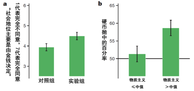 为了突出实验组成员的职业身份,所有实验对象都填写了一份网络问卷。实验组被问及了7个与职业背景相关的问题,例如“你目前就职于哪间银行?”或“你在银行的职能是什么?”;而对照组则被问及7个与职业无关的问题,例如“你每周平均花多长时间看电视?”。随后,所有人都进行了10次抛硬币实验,并报告自己的结果。在实验前,研究者告诉他们,抛中其中一面能够获得20美元的奖励,而且只有他们抛中次数大于或等于其他人时,他们才能拿到奖金。科恩解释说:“我们增加了这个元素来模拟银行业的竞争环境,让实验环境更接近银行职员们每天都要面对的商务决策。”