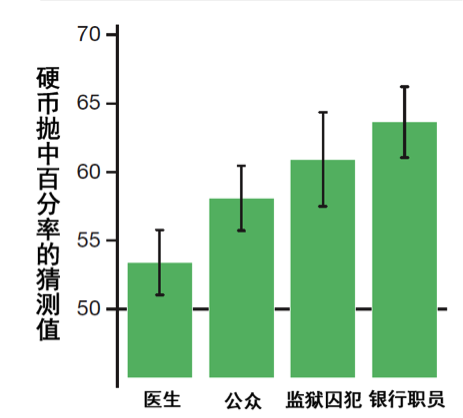 公众对不同人群报告的硬币抛中率的猜测。图片来源:研究论文。