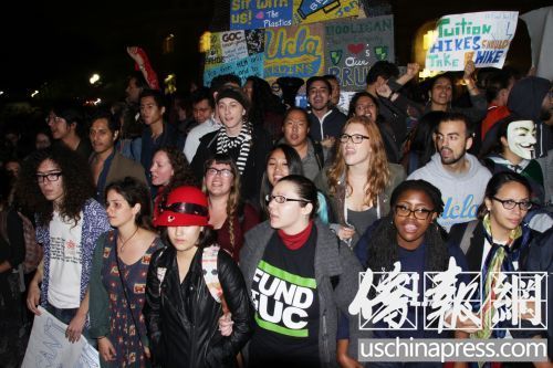 中新网11月23日电 据美国《侨报》报道,加州大学校董会20日通过了加大系统调涨学费的议案,引起洛杉矶加大学生强烈不满,百余名学生在20晚校园年度篝火晚会上抗议示威,并成功阻止了点燃篝火。希望点燃篝火的学生与抗议学生曾一度对峙、争吵,场面混乱。