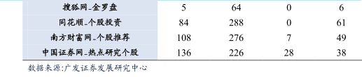 首先基于本专题所跟踪的热门财经网站的荐股栏目历史荐股信息,考虑单个财经网站上荐股栏目的选股能力,主要考虑四个方向的策略:考虑全样本内个股的推荐能力、考虑全样本内沪深300个股的推荐能力、考虑全样本内创业板个股的推荐能力以及考虑全样本内申万一级行业指数成分股的推荐能力;其次基于单个财经网站上荐股栏目的选股能力的量化策略,考虑网站之间的荐股能力,择优选择前期表现较好的热门财经网站,然后基于这些热门网站的荐股信息构建量化策略。我们首先看一下各大热门财经网站每日荐股信息的统计指标。