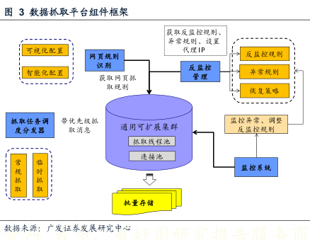 3) 对于大规模的互联网信息抓取而言,单线程的数据获取是一项非常局限的事情,因此多线程、分布式的信息抓取平台是必须搭建的。因此数据的抓取平台的搭建是一项基础性的工作。由于需要爬取的财经小编的网站数量多,并且需要爬取所有的个股推荐信息,因此爬取的效率是非常关键的一步,多线程、分布式爬取是解决效率问题的好办法。对特定网站需要爬取内容的,需要注意的是网站代码格式不一致问题,因此需要动态地调整爬取程序(正常爬取代码格式+特殊的格式爬取),爬取完成后信息的规范化存储也是一个比较重要的问题,这个可以方便后面的数据清洗、处理。推荐采用数据库存储格式或者本地磁盘的文本形式存储。同时出于对网站安全的考虑,需要实时监控程序的运行,防止网络访问限制问题,设置适当的断线重连机制,IP切换机制等;