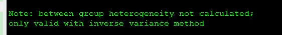 按照stata 的提示,菜单操作即使选择效应模型为random(I-V),还是默认用D+L法合并的数据;或者改写命令 metan md semd, randomi,也还是提示亚组间异质性结果得不出来,需要使用I-V模型。。。