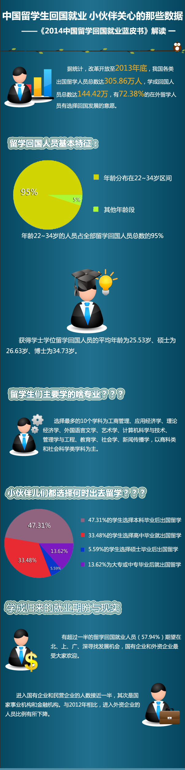 图说:2014中国留学生回国就业 小伙伴关心的那些数据
