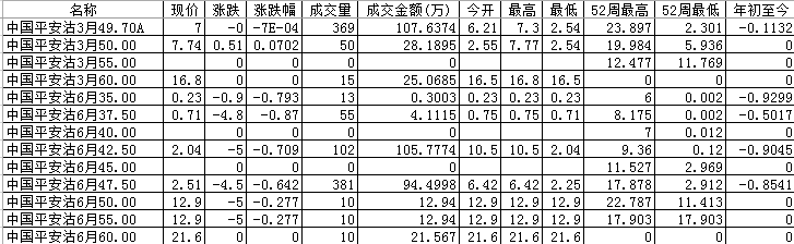 如图,看有很多朋友和自己一样在找仿真期权数据,我是在万德终端上下载的。资料中包括中国平安股票的日数据,还有12月、1月、3月、6月到期的期权12月1日的价量信息表,具体的有12月24日到期的买权和卖权的历史日数据。如果有朋友需要别的,可以留言,根据数据多少提供有偿下载服务~!这一切都是为了挣币购买自己论文需要的数据,还望大家支持。