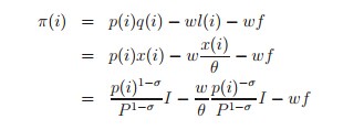 zhoumimismall 发表于 2014-12-4 16:35 在Melitz模型中,为求得厂商的最优定价时,对利润函数π(i) = p(i)q(i) − wl(i) − wf 求导,其 ...