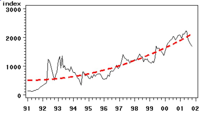 有些时间序列具有非常显著的趋势,我们分析的目的就是要找到序列中的这种趋势,并利用这种趋势对序列的发展作出合理的预测。