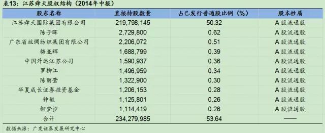 目前,江苏舜天股份有限公司的大股东为江苏舜天国际集团,持有上市公司50.32%的股份。2000年1月,大股东江苏舜天国际集团和江苏省体育局共同建立江苏国信舜天足球俱乐部。2011年国信集团收购江苏舜天国际集团,正式成为江苏足球俱乐部的投资方,目前俱乐部隶属于江苏国信资产管理集团。江苏国信舜天足球俱乐部是中超联赛的传统劲旅,自2008年升入中超联赛以来从未降级,曾获中超联赛亚军、足协杯冠军,在2014赛季排名第8。