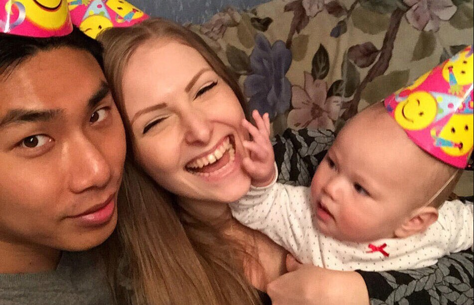 出生于工薪家庭的承德小伙梅爱偲12年前高考320分,跟朋友留学乌克兰,靠自己的聪明和韧劲闯出一片天,并和18岁美女高中生结婚生子,买下3000平米土地盖房子。他说娶外国女人比娶中国女人容易,不用拼爹拼票子。 一年预科毕业后,梅爱偲稀里糊涂地选择了哈尔科夫工艺美院,而他也成为学校里唯一不会画画的学生。在美院第一个学期的大部分生活是在打游戏、旷课中度过,梅爱偲觉得生活没有目标,想做出改变。图为梅爱偲一家三口。