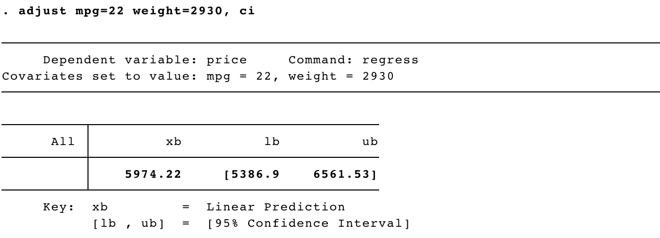示例:求当mpg为22,weight为2930时,price预测值的置信区间。