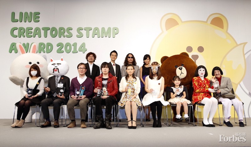 Kanahei(前排右起第四位)在LINE最近举行的表情贴图颁奖典礼上。