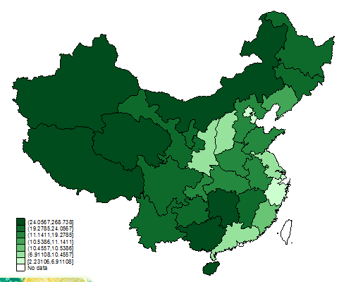 无他 发表于 2014-12-24 08:48 命令如下: spmap grp using county_2004coor,id(id) clnumber(10) ndfcolor(yellow) fcolor(Greens2) oco ...