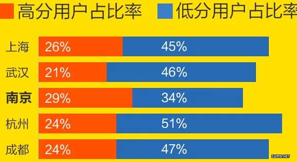都说南京人有文化、有底蕴,这个数字确实能说明——他们最能成为姜文的知音!对于务实的广州人来说,没有文化上的任何亲近性,也最容易直接抛出差评!