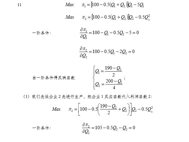 annozk 发表于 2014-12-23 12:47 先假设1为领导者,2为跟随者;再假设2为领导者,1为跟随者。比较在两种不同情况下,各自利润的多少。 第二 ...